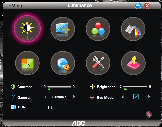 Най-удобното е i-Menu, което позволява да управлявате настройките на монитора софтуерно с мишката, а не чрез хардуерните бутони. Това доста улеснява работата, тъй като наистина е неудобство да натискате различните бутони и да се ориентирате в менютата.