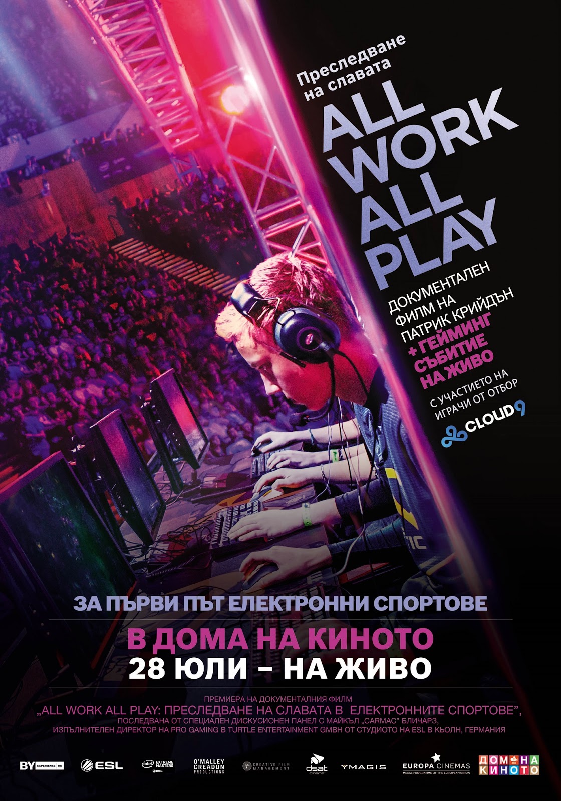 На 28.07 в Дома на Киното в София можете да гледате световната премиера на документалния филм на Патрик Крийдън „All Work All Play: Преследване на славата в електронните спортове”.