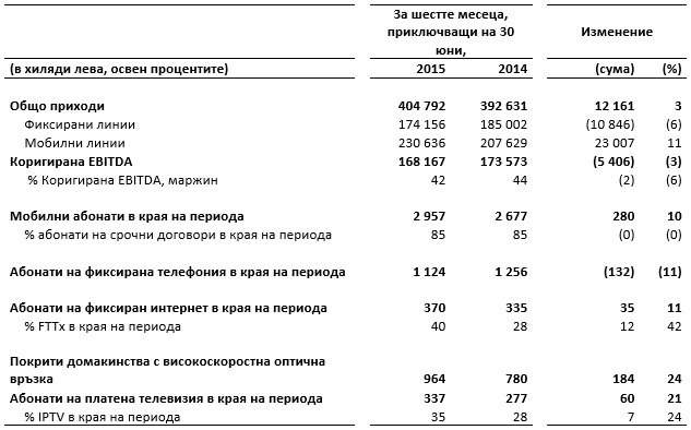 Телекомът продължава да увеличава пазарния си дял от приходите от мобилни услуги и достига 27% в края на първото полугодие на 2015 г.