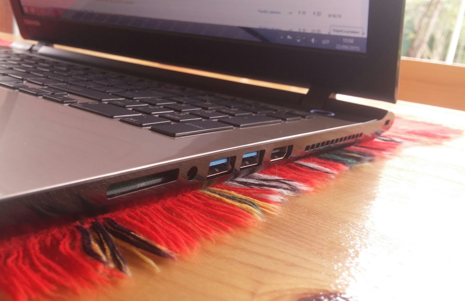 Иначе портовете са разпределени по следния начин: отляво на корпуса USB 2.0, LAN, порт за зареждане и оптично устройство, а от дясно 2 x USB 3.0, HDMI, 3.5 мм, SD слот.