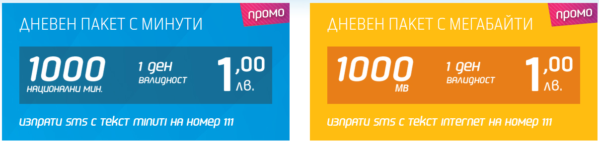 Клиентите на Теленор вече могат да се възползват от промоционални дневни пакети с до 1000 национални минути и до 1000 MB мобилен интернет на цена от 1 лев. Специалните предложения са част от кампанията на оператора по повод първия му рожден ден.