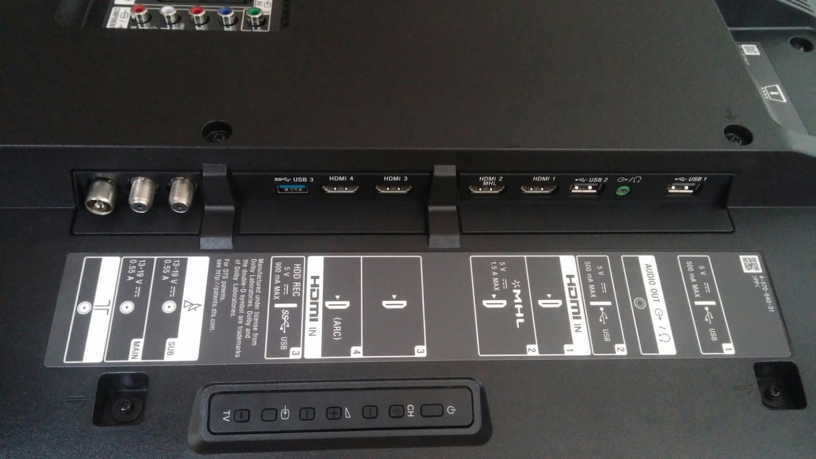Голямото разнообразие от портове се намира отляво зад екрана. Разполагате с 4 x HDMI (1 x MHL), 2 x Composite, Component In, RF, SCART, LAN, 3 x USB (1 x USB 3.0), Audio Out, Digital Audio Out. Също от лявата страна се намират и хардуерните бутони за управление, които може и никога да не използвате.