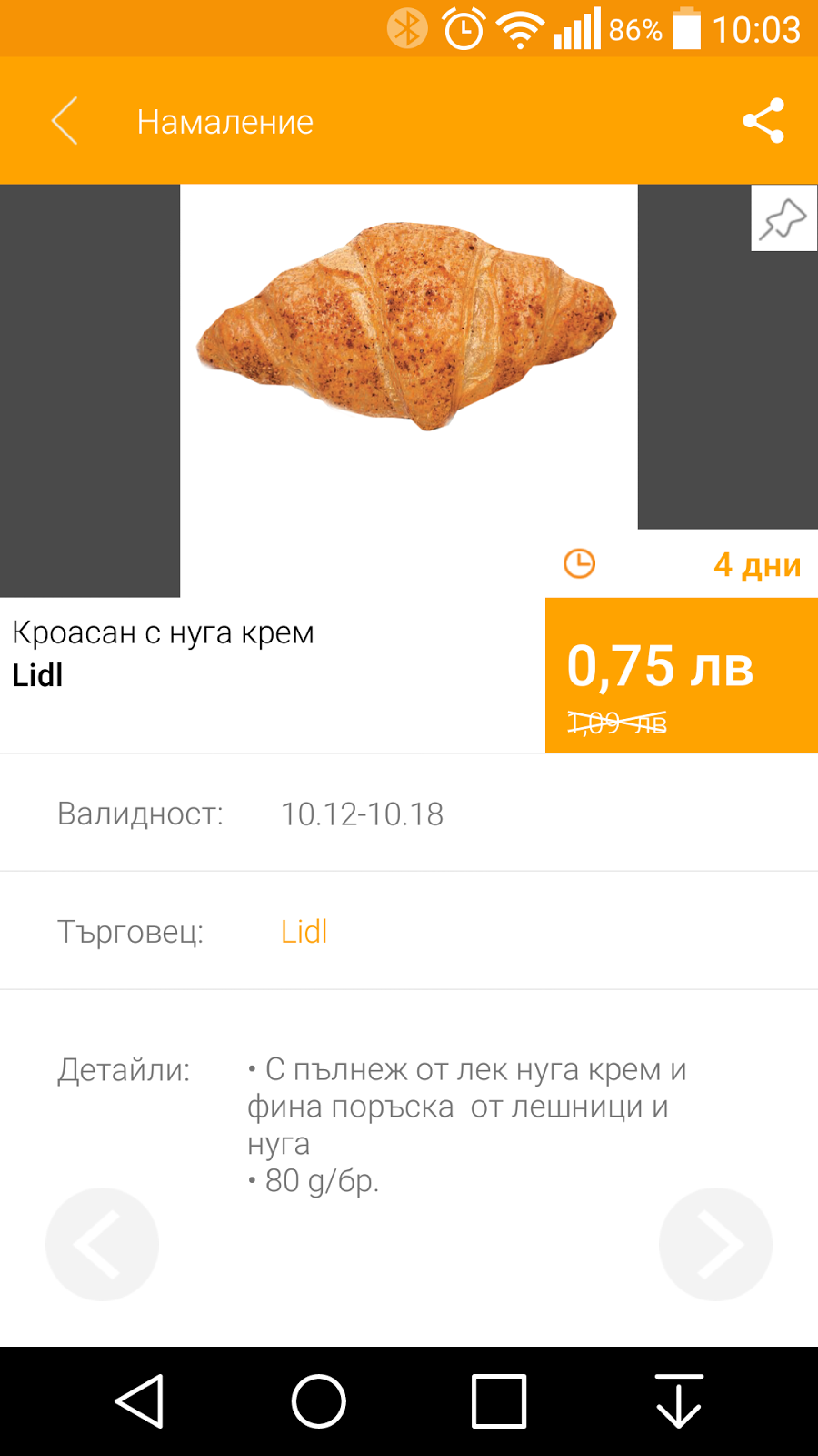 При отваряне на списъка с предлагани продукти веднага разполагате с най-важната информация – цена и оставащи дни от промоцията. Освен това можете да прегледате и допълнителна продуктова информация при натискане на съответния продукт.