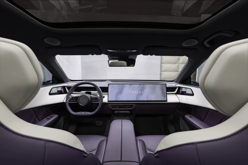 Дизайнът следва еволюция на философията Kodo – Soul of Motion, адаптирана към електрическата ера. Пропорциите се определят от междуосие от 2 902 мм и къси надвеси, което допринася както за визуалния баланс, така и за вътрешното пространство. Багажникът предлага 468 литра обем, който може да бъде увеличен до 1 434 литра при сгъване на задните седалки.