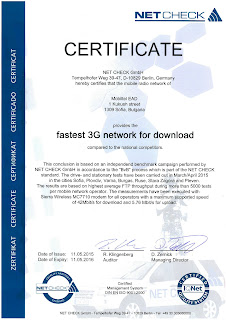 Мтел със сертификат за „Най-бърза 3G мрежа за даунлоуд в България“