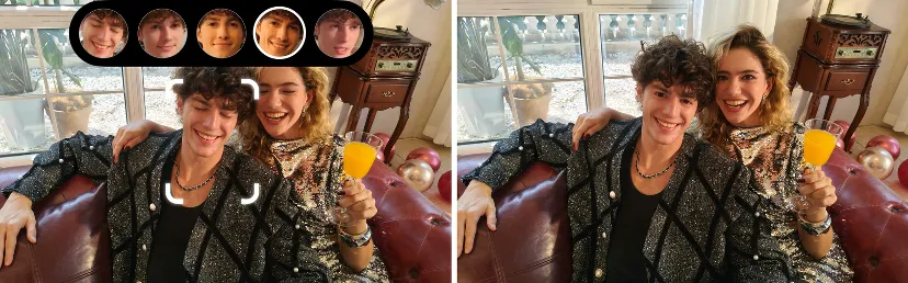• AI Perfect Shot – може да коригира изражение, затворени очи или коса, покриваща лицето, използвайки референтни снимки.