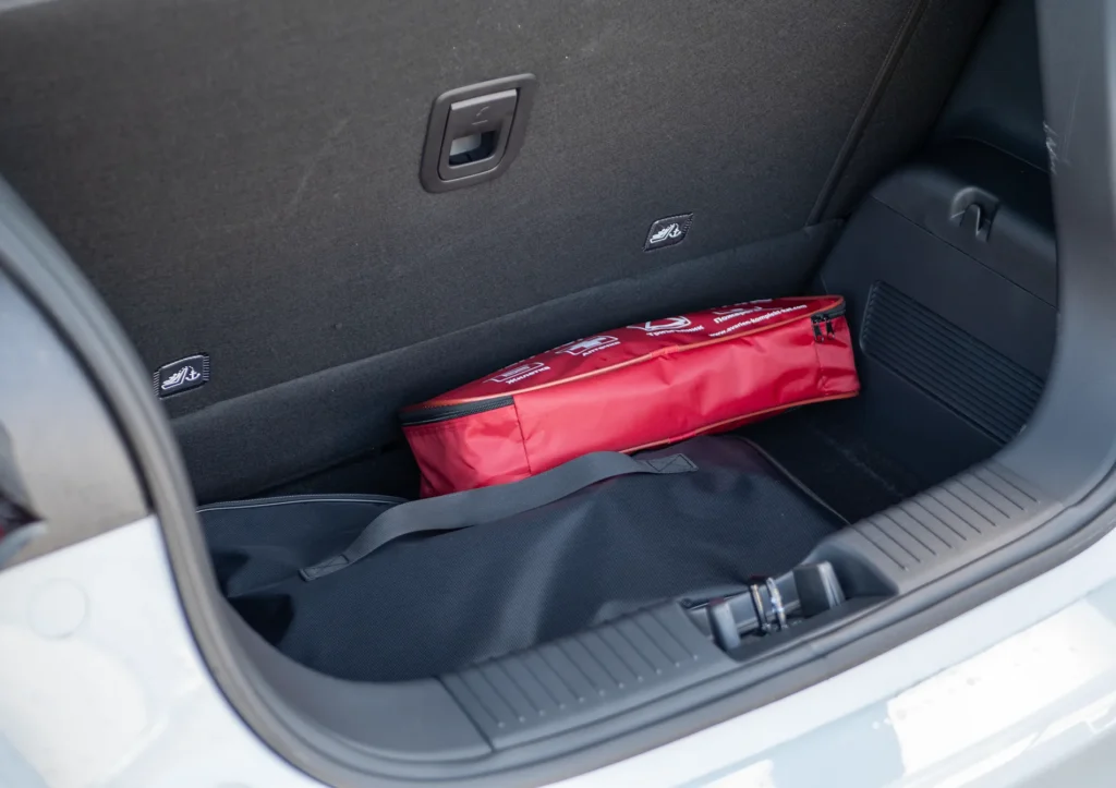 Батерията е с капацитет 37.3 kWh, като поддържа DC зареждане до 45 кВт – това позволява от 30% до 80% за около 36 минути. На AC станция (7 kW) пълното зареждане отнема приблизително 6 часа. Тук не мога да споделя лични наблюдения за зареждането, тъй като не ми се наложи да я заредя. Има Type 2 Mode 2 и Mode 3 кабели за зареждане.