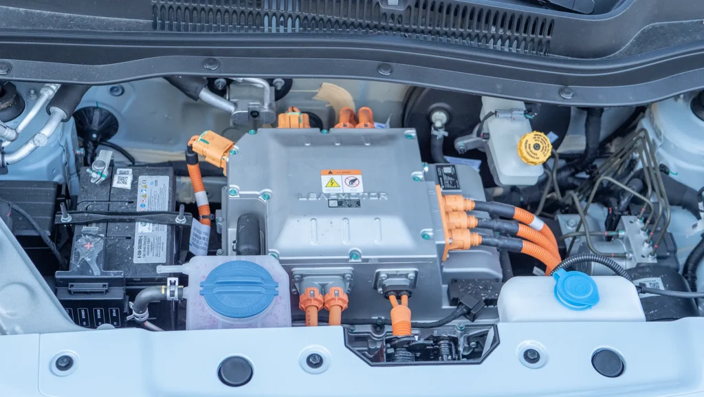 Под капака работи синхронен електромотор с постоянни магнити, осигуряващ 70 кВт (95 к.с.) и 158 Нм въртящ момент – напълно достатъчно за малък градски автомобил. Ускорението 0–100 км/ч отнема 12.7 секунди, а максималната скорост е 130 км/ч.