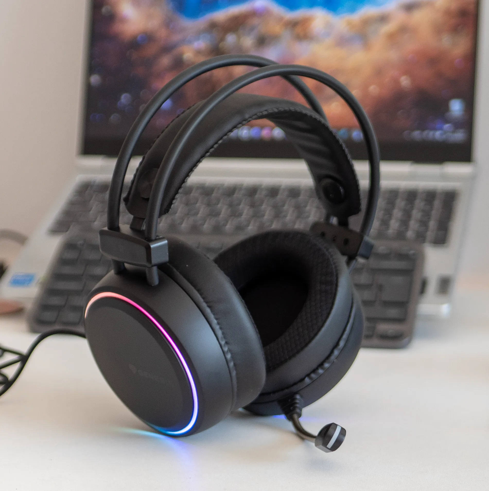 RGB ефектът при Genesis Neon 613 е дискретен и стилен – не заслепява, не „крещи“, а по-скоро допълва визията. Тънкият пръстен светлина около чашките придава модерен, но професионален облик, което позволява на слушалките да се впишат както в гейминг сетъп, така и в офис среда.