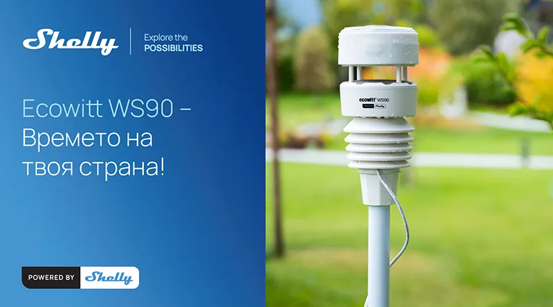 Българската технологична компания Shelly Group обяви ново устройство в линията Powered by Shelly – Ecowitt WS90 7-in-1, мултифункционална метеорологична станция с интегрирани сензори за температура, влажност, скорост и посока на вятъра, осветеност и валежи. Устройството предоставя детайлна и актуална информация за атмосферните условия, подходяща както за домакинства, така и за по-специфични приложения като градинарство и малки ферми.