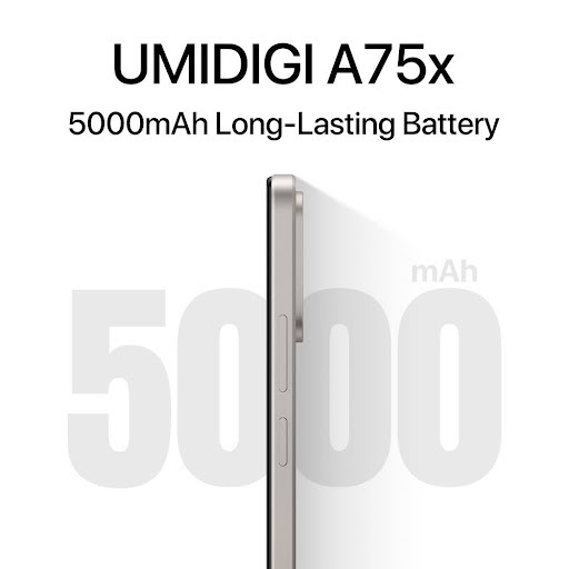 UMIDIGI A75x включва батерия с капацитет 5000 mAh, осигуряваща до 27 часа разговори или 8 часа гейминг според данните на производителя. Устройството поддържа 10W Type-C зареждане и е с профил от 8.1 мм.