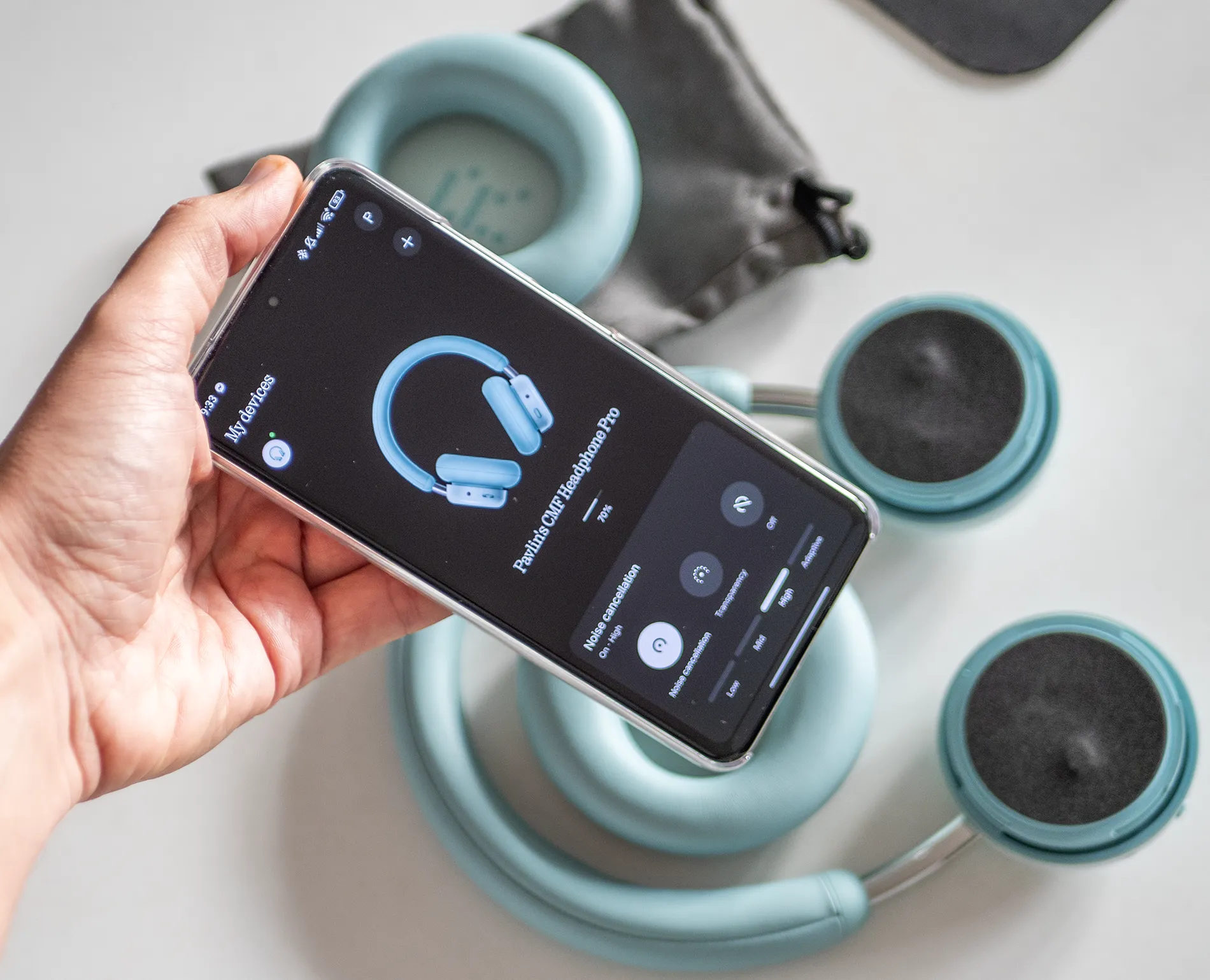 CMF Headphone Pro предлагат ефективно активно шумопотискане (ANC), което елиминира до 99% от околния шум. В реални условия това означава значително намаляване на шума от трафик, разговори и разнообразни машини, особено в комбинация с музика. В това се убедихме лично при работата със слушалките.