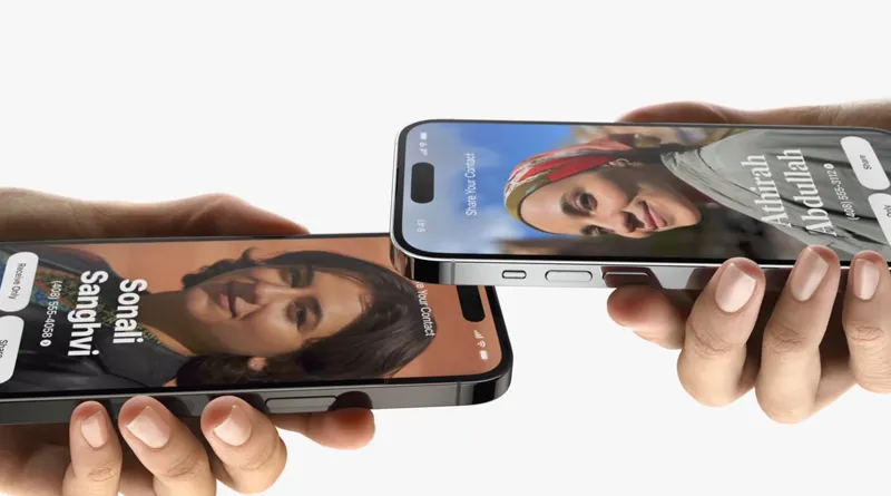 В iOS NameDrop позволява на потребителите да доближат два iPhone устройства или iPhone и Apple Watch, за да стартират анимация за споделяне на контактни данни. След това потребителят може да избере дали само да получи визитката на другия човек или да сподели своя, включително кои данни да бъдат включени.