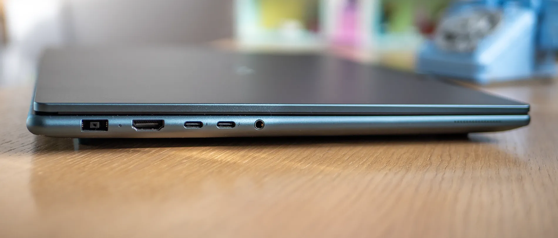 - Свързаност: Wi-Fi 7, Bluetooth 5.4, HDMI 2.1, 2 x USB-A, 2 x USB-C, SD слот, 3.5 мм.