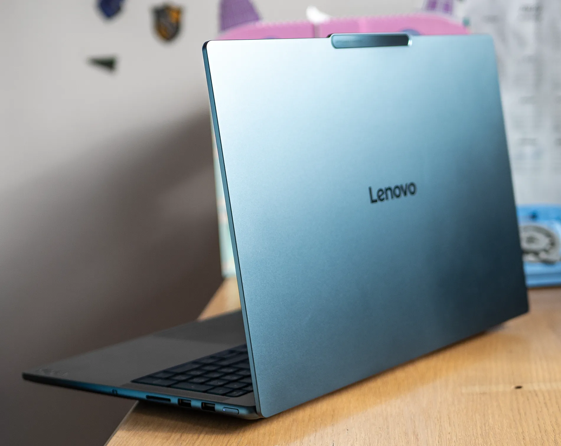 Yoga Pro 9i Aura Edition залага на елегантен и професионален дизайн в случая в цвят Tidal Teal. Корпусът е изработен с до 50% рециклиран алуминий в капака и е с опаковка без пластмаса, което подчертава стремежа на Lenovo към устойчиво производство.