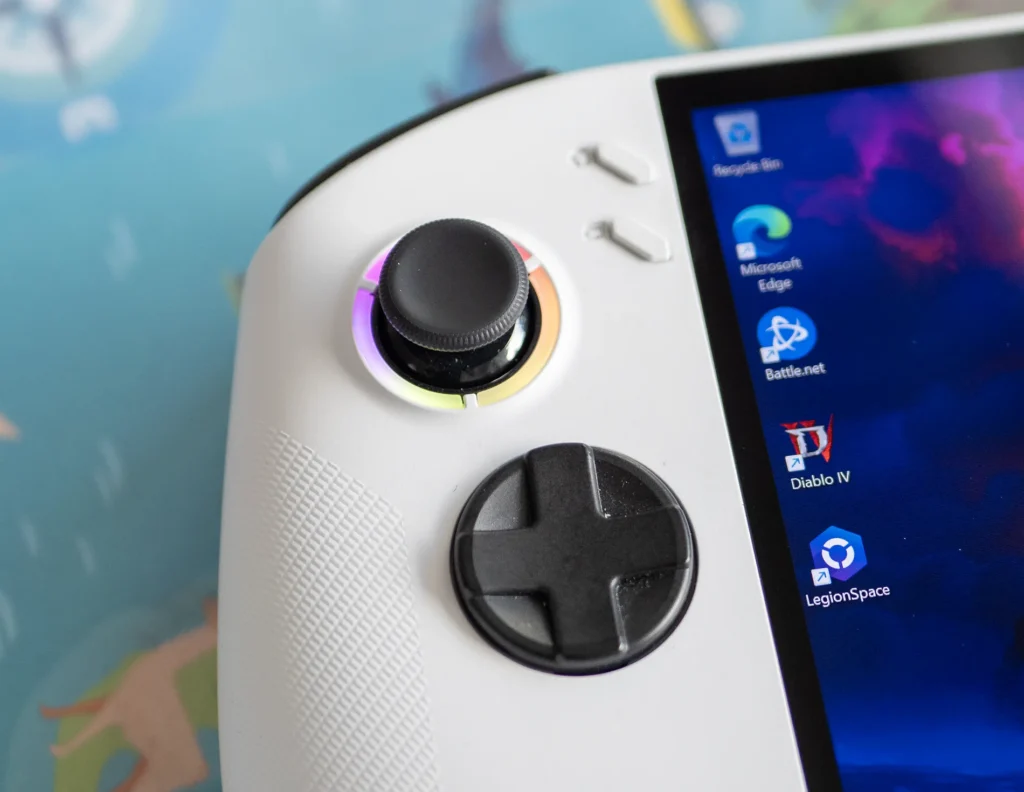 Към това добавяме 16 GB LPDDR5X (7500 MHz), 512 GB PCIe SSD и MicroSD слот за допълнително разширение с до 1TB. Бързата памет и NVMe сториджът осигуряват кратки времена за зареждане и плавна работа на Windows 11, включително при превключване между игри и приложения.