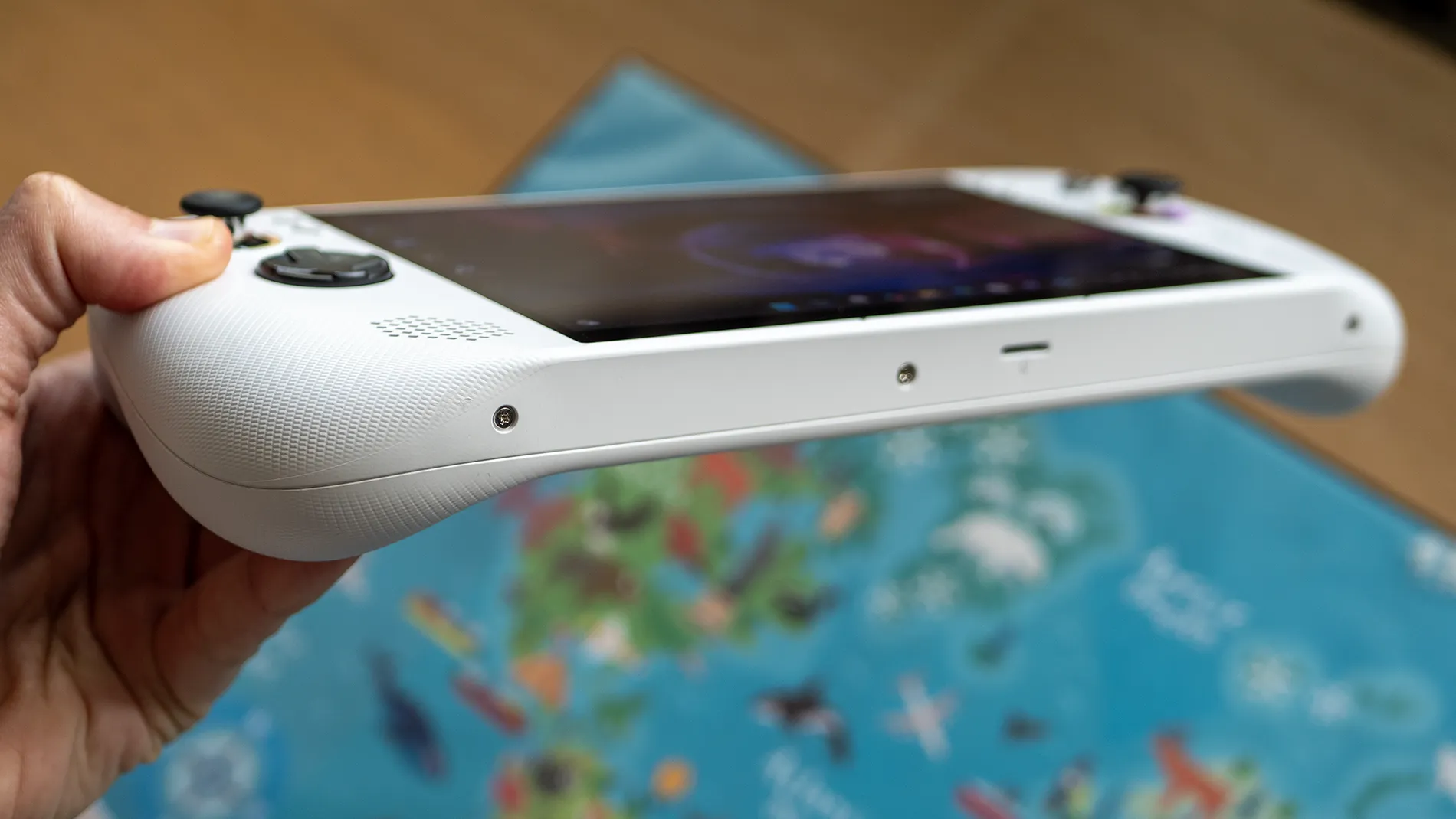 Към това добавяме 16 GB LPDDR5X (7500 MHz), 512 GB PCIe SSD и MicroSD слот за допълнително разширение с до 1TB. Бързата памет и NVMe сториджът осигуряват кратки времена за зареждане и плавна работа на Windows 11, включително при превключване между игри и приложения.