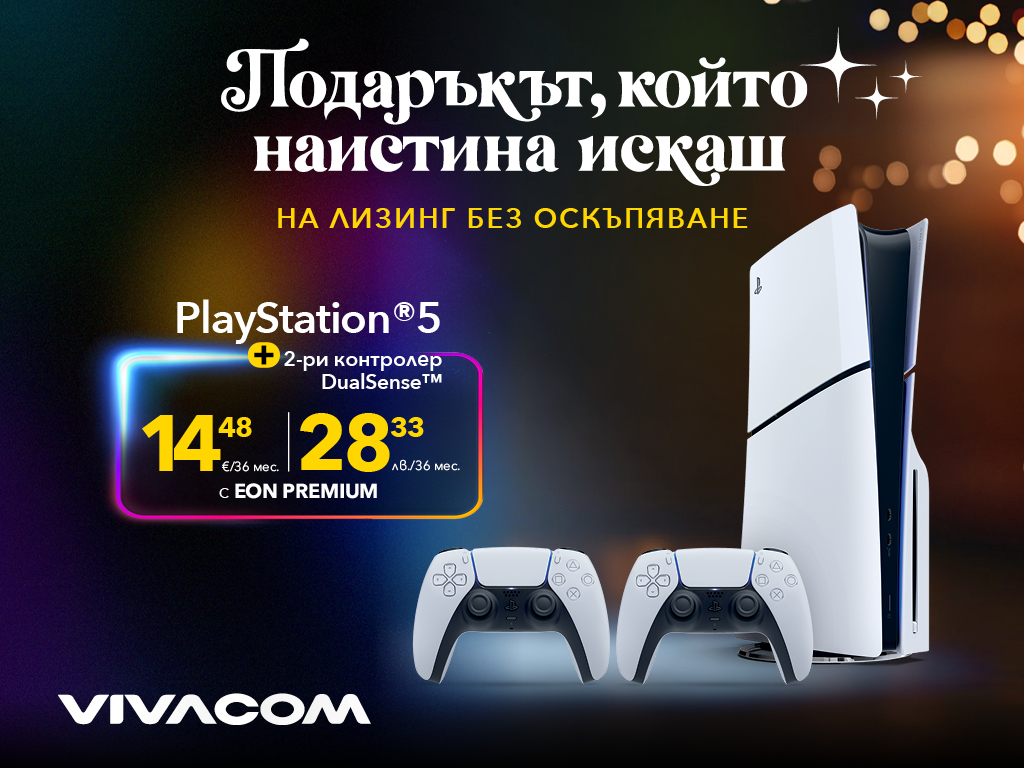 До 20.12.2025 г. Vivacom предлага конзолата на лизинг без оскъпяване в сравнение с цената при еднократно плащате в комбинация с 24-месечен абонамент за EON телевизия и Vivacom Fiber интернет, което го прави още по-привлекателна оферта.