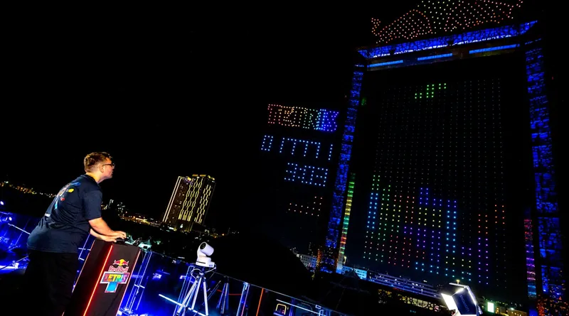 Турнирът се проведе на фона на емблематичния монумент Dubai Frame, където дроновете образуваха огромен „екран“ в небето. В реално време те визуализираха падащите блокове и движенията на играчите, създавайки усещане за класическа аркадна игра, но в мащаб, невиждан досега.