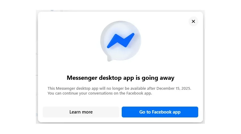 Meta официално прекратява поддръжката на настолното приложение на Facebook Messenger за Mac и Windows, считано от 15 декември 2025 г. Потребителите на приложението вече се пренасочват към уеб версията на Facebook, за да продължат да използват услугата за съобщения.