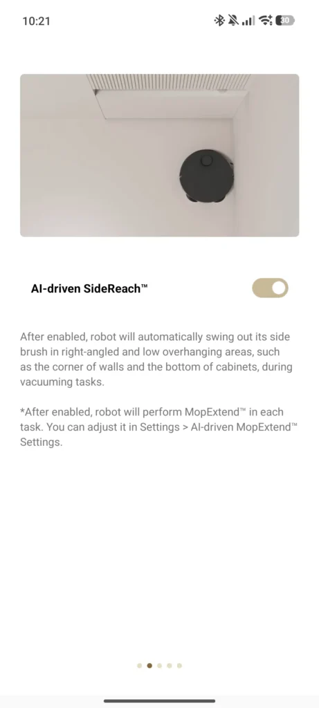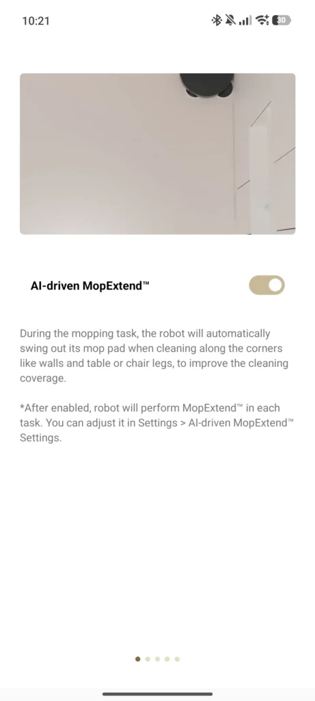 Това е значимо, ако имаш по-високи прагове, релси към тераса или преходи между помещения, които спират много роботи. Пробвахме функционалността на практика и той наистина се справя в такива условия – определено полезно.