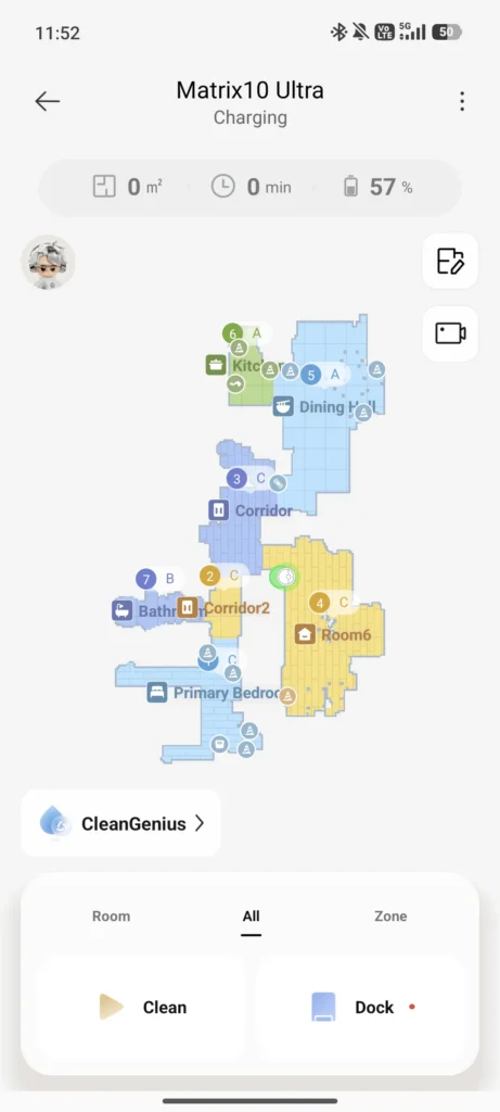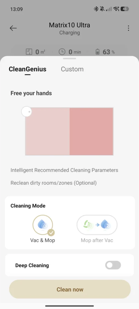 Заявката е за 30 000 Pa мощност за засмукване, а конструктивно Matrix10 Ultra използва двойни ролкови четки и анти-усукваща концепция (HyperStream Detangling DuoBrush). На практика така роботът е доста ефективен и при значително замърсяване. Той е отлично решение за твърди настилки и се справя с ежедневен прах/косми, което е силата му.