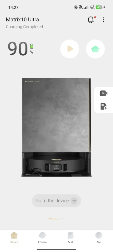 Мобилното приложение на Dreame служи като централен контролен панел за Matrix10 Ultra и позволява детайлно управление на почистването по стаи и зони. Потребителят може да създава и редактира карти на жилището, да задава виртуални стени и забранени зони, както и да избира различни режими за прахосмукиране и миене според настилката. Приложението дава възможност за фино настройване на мощността на засмукване, количеството вода при мопинг и последователността на почистване, включително комбинирани цикли „прахосмукиране + миене“. Налични са и графици за автоматично почистване, което позволява роботът да работи напълно автономно в предварително зададени дни и часове.