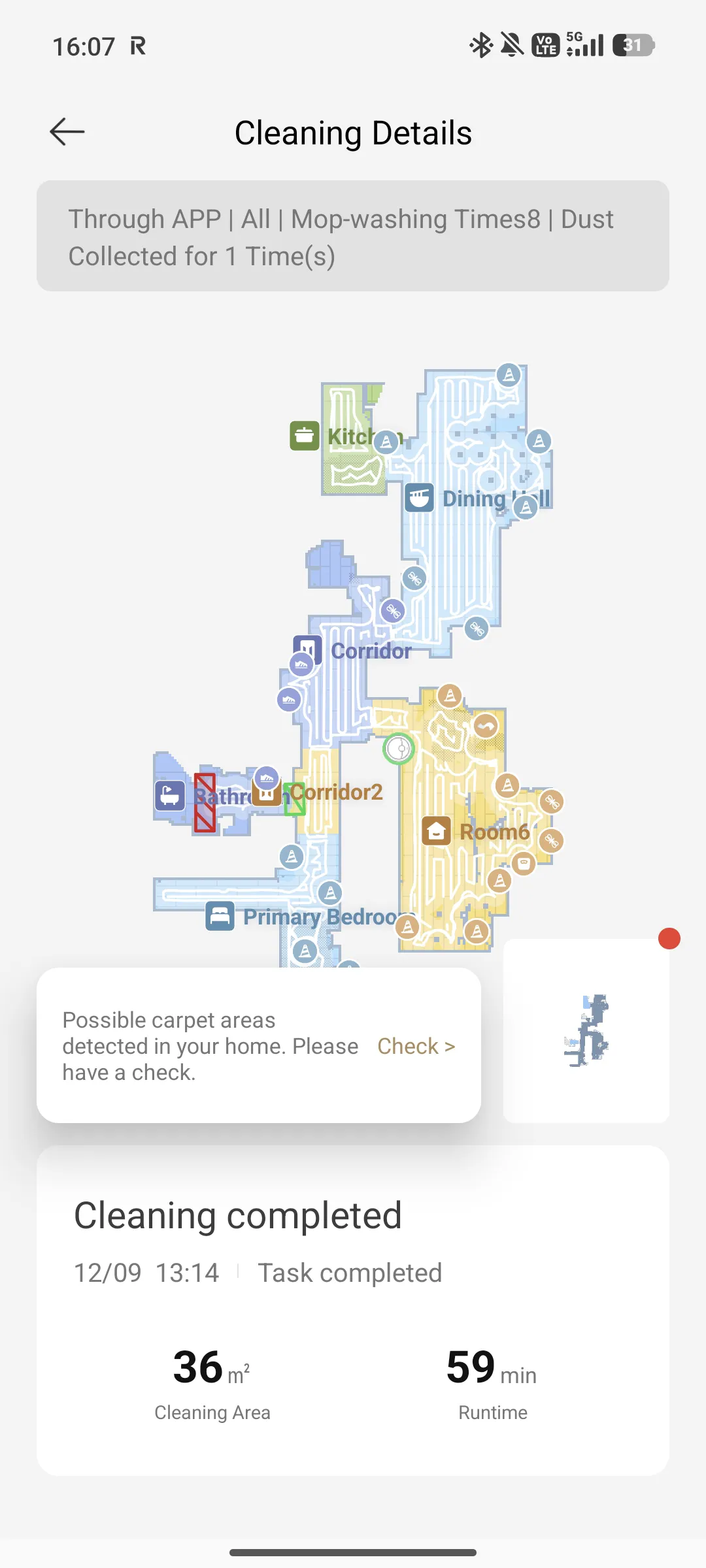Това е значимо, ако имаш по-високи прагове, релси към тераса или преходи между помещения, които спират много роботи. Пробвахме функционалността на практика и той наистина се справя в такива условия – определено полезно.