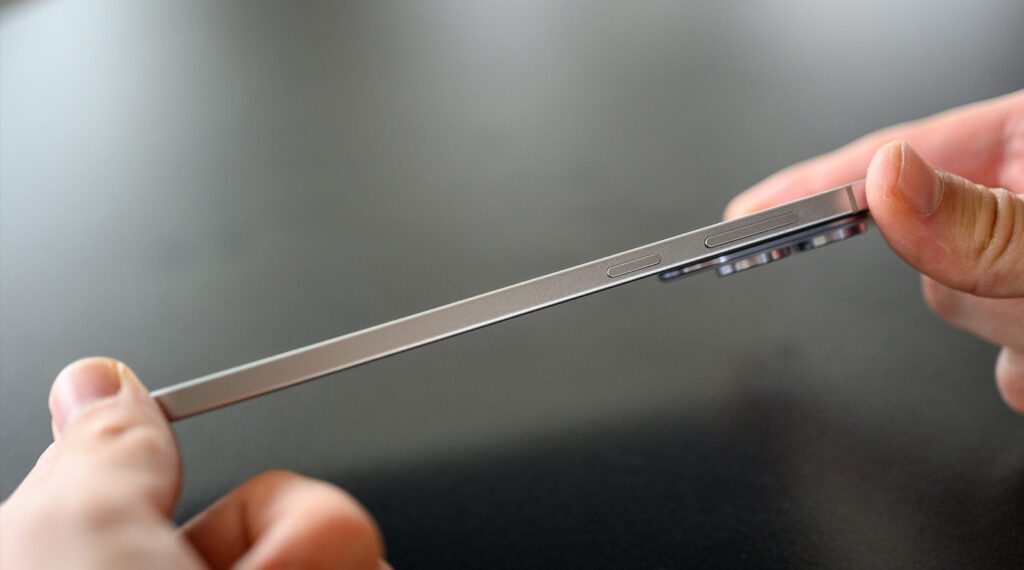 Въпреки това компромиси почти няма. Моделът предлага същата основна камера, същата здрава комбинация от закалено стъкло и титаниева рамка и също толкова качествен AMOLED дисплей. Предимството е, че всичко това е събрано в корпус, който не натежава нито в ръката, нито в джоба – и създава онова любопитно усещане, че държиш нещо изненадващо тънко за възможностите си.