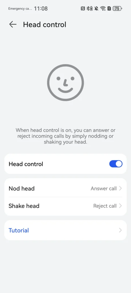 - управление чрез движение на главата – кимане или поклащане за управление и отказване на повикване