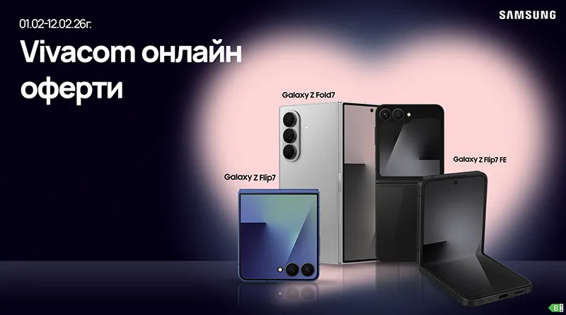 Независимо дали празнувате Свети Валентин или просто търсите повод да зарадвате себе си или любим човек, Vivacom стартира специални онлайн атрактивни отстъпки до 300 € | 586.75 лв. за смартфони Samsung в комбинация с план от телекома, валидни при сключване на 24-месечен договор за планове Unlimited. Сред предложенията са най-новите сгъваеми модели Samsung Galaxy Z Fold7, Galaxy Z Flip7 и Galaxy Z Flip7 FE, които съчетават иновативен дизайн, интелигентни функции и стил. Офертата е валидна само онлайн на vivacom.bg до 12 февруари и превръща избора на подарък в лесно, бързо и изгодно решение.