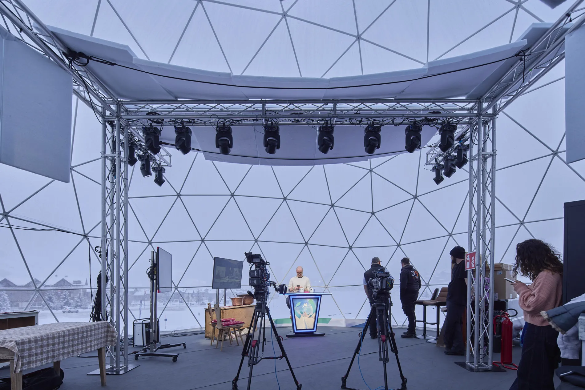 От студиото ще се откриват панорамни гледки към Доломитите, заснеженото селище и ключови олимпийски обекти, сред които олимпийският стадион за кърлинг, алпийският ски център „Тофане“ и новият център за спускане в Кортина, където ще се проведат състезанията по бобслей, шейни и скелетон.