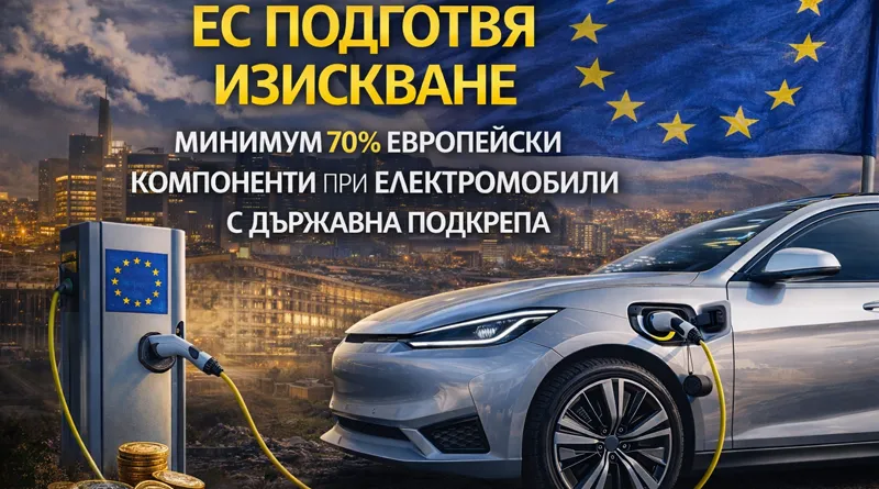 Европейската комисия подготвя законодателни промени, които ще изискват електромобилите, получаващи държавна подкрепа в ЕС, да съдържат минимум 70% компоненти, произведени в Съюза. Мярката е част от по-широк пакет, насочен към защита на европейската индустриална база на фона на засилената конкуренция от Китай.