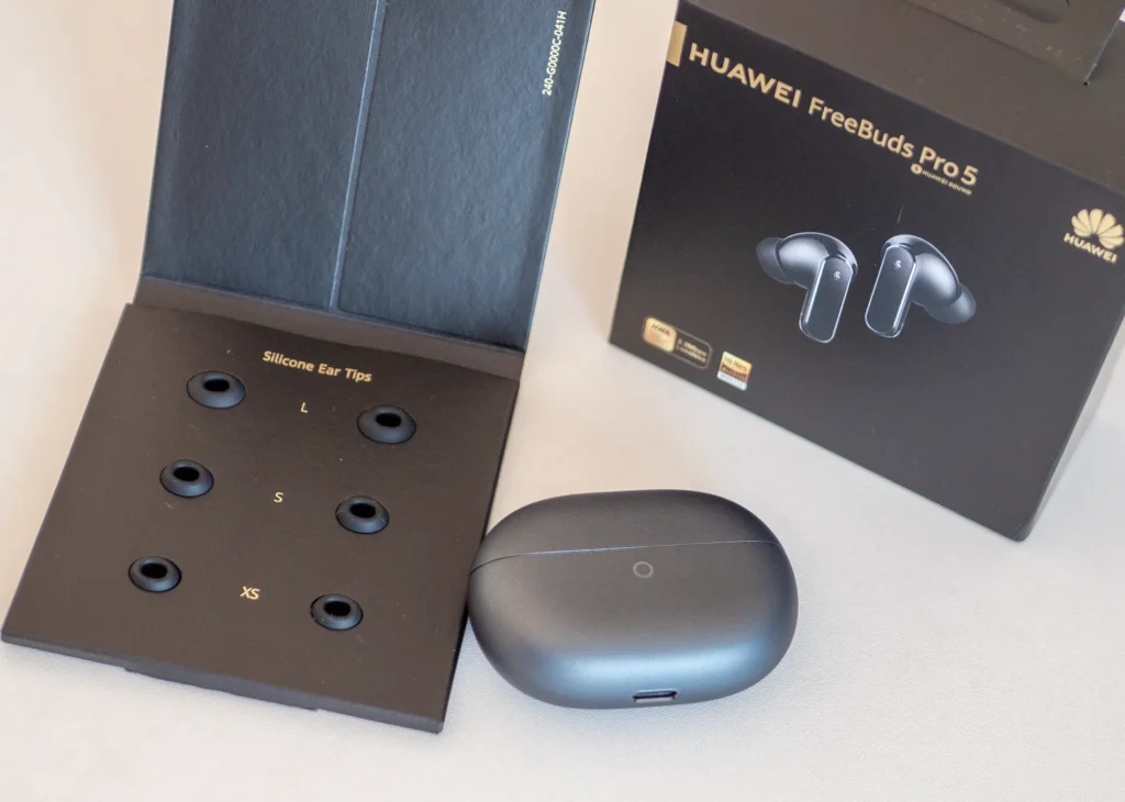 Huawei FreeBuds Pro 5 идват с четири размера силиконови накрайници (XS, S, M и L), което улеснява намирането на оптимално пасване според формата на ухото.