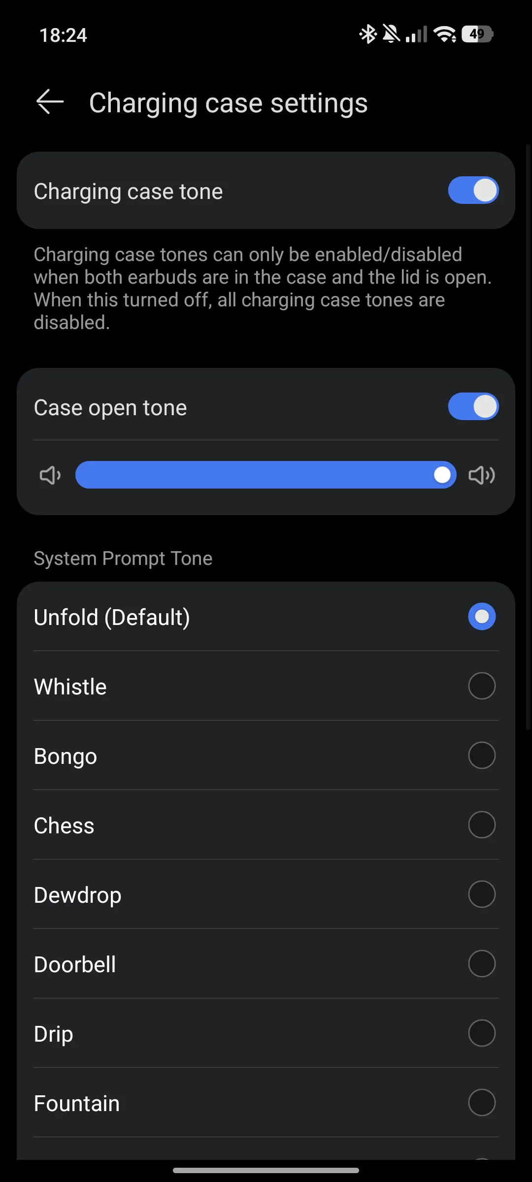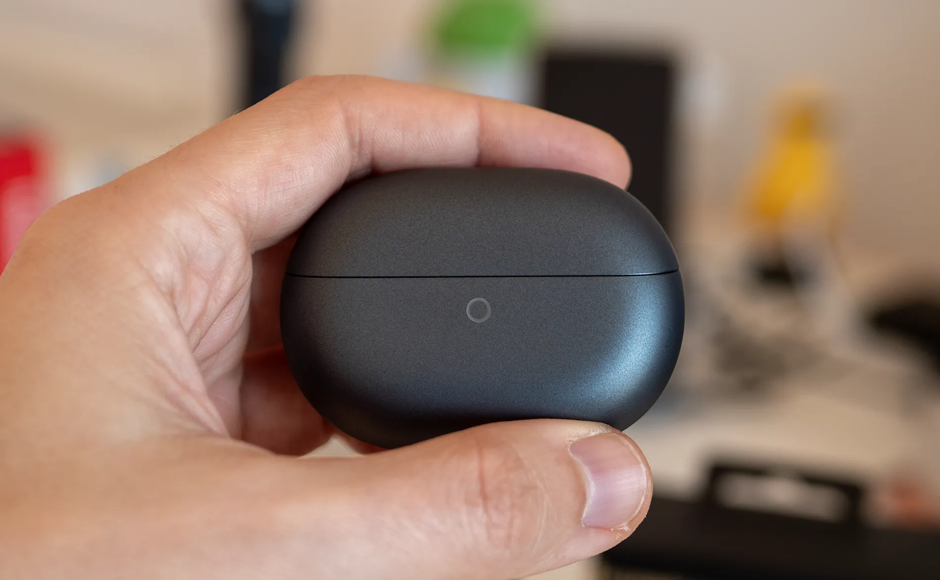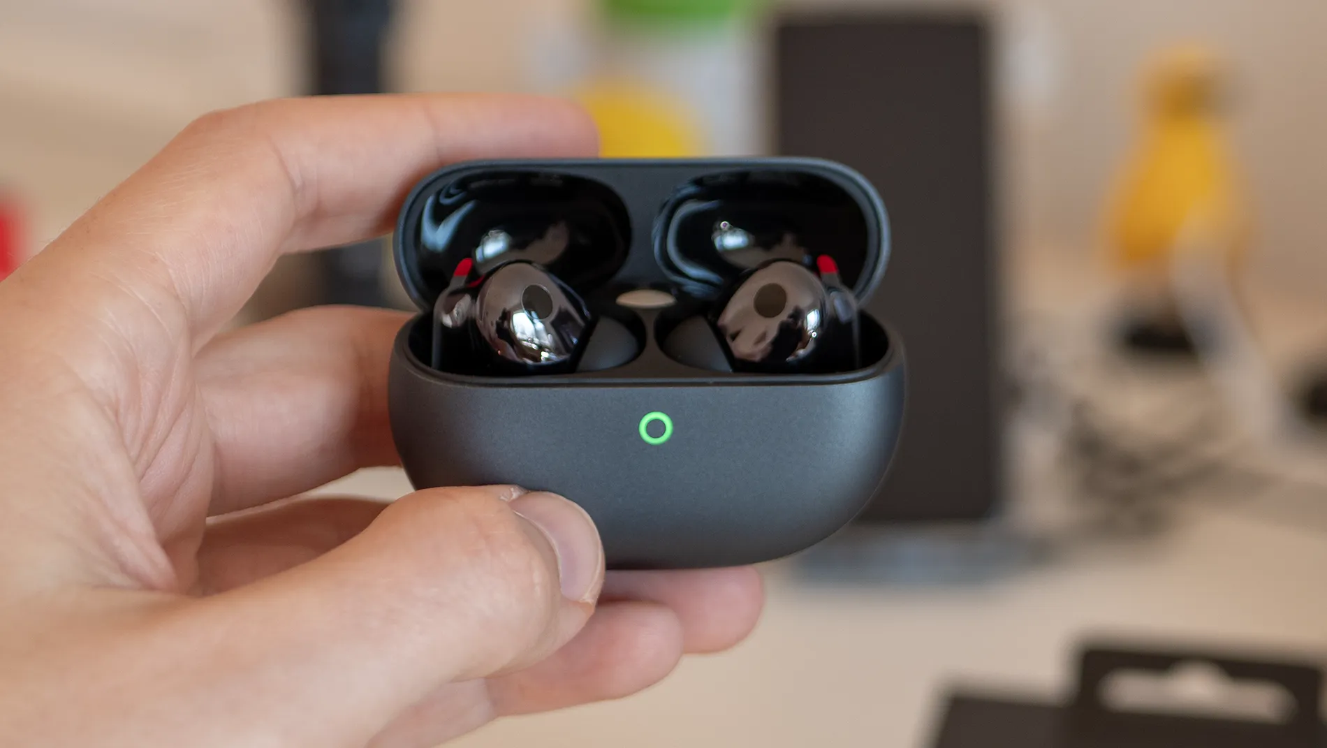 Кейсът за зареждане е компактен и удобен за носене в джоб. Вътрешната част е леко скосена, което улеснява изваждането на слушалките. Капакът се затваря стабилно и без луфтове, а светлинният индикатор ясно показва състоянието на батерията и режима на сдвояване.