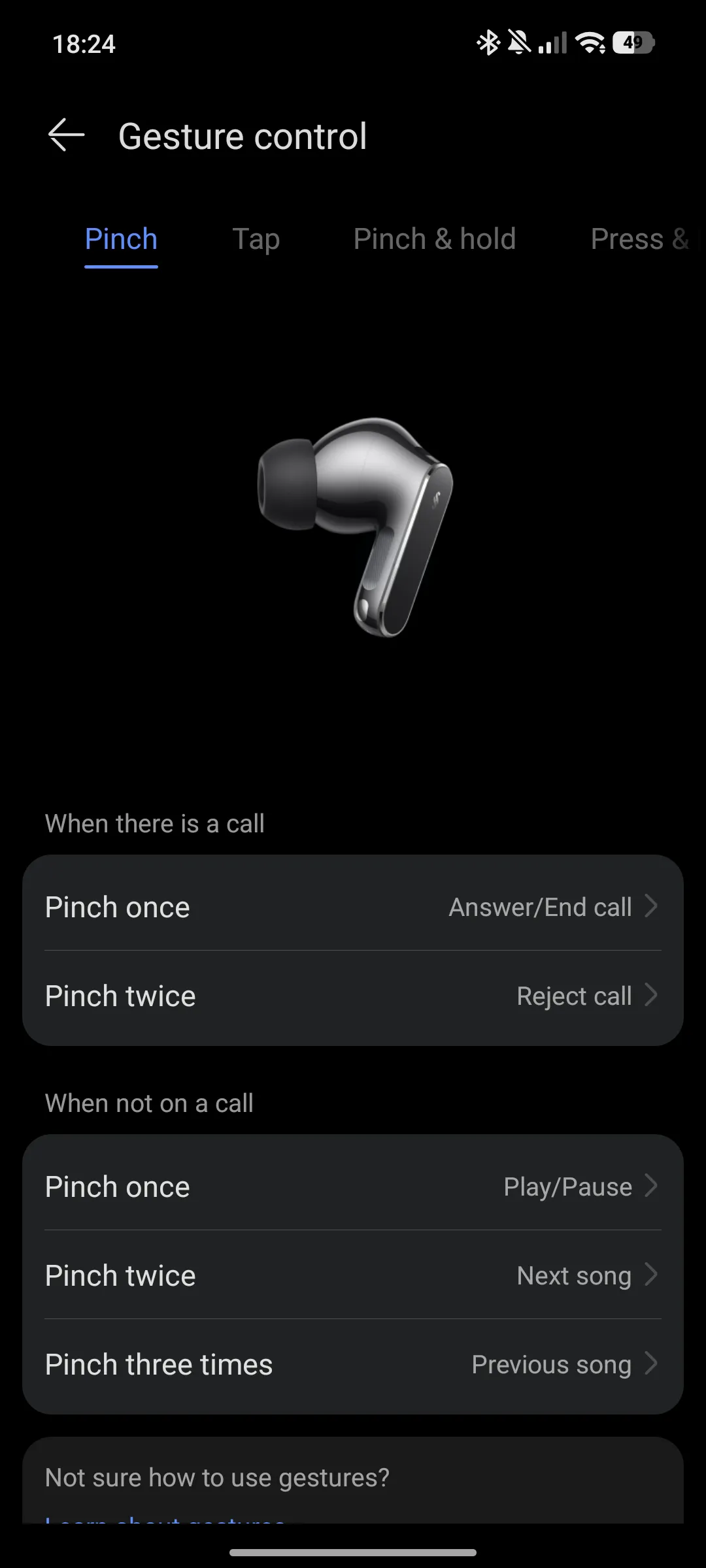 FreeBuds Pro 5 предлагат интуитивно управление чрез комбинация от плъзгане, натиск и докосване върху стеблата. След кратко свикване всичко става напълно естествено.