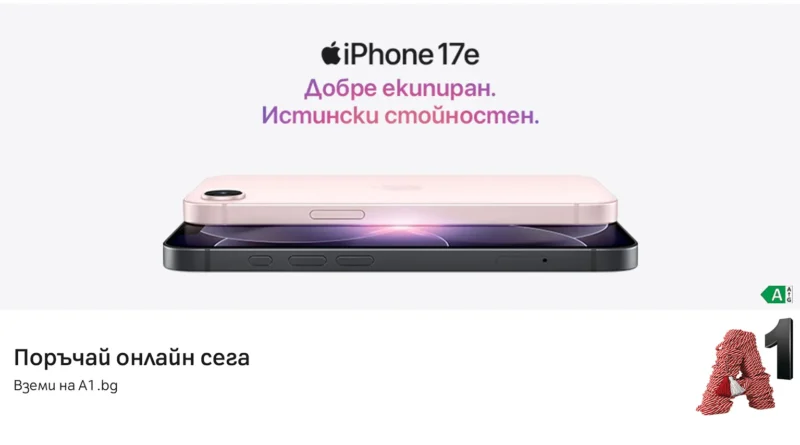 A1 обяви началото на официалните продажби на новия iPhone 17e в България. Устройството вече е налично в портфолиото на телекома и се предлага с редица хардуерни подобрения, включително ново поколение процесор, обновена камера система и увеличена начална памет.