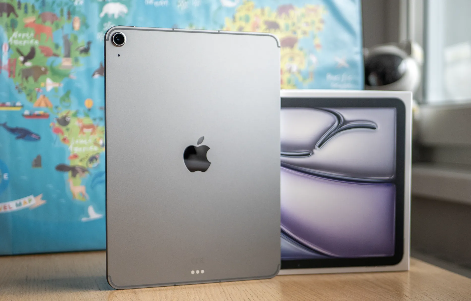 Изработката е на високо ниво, без изненади. Това е продукт, който изглежда и се усеща премиум, въпреки че не е най-високият клас в портфолиото на Apple. Размерите са 247.6 х 178.5 х 6.1 мм при тегло 465 г.