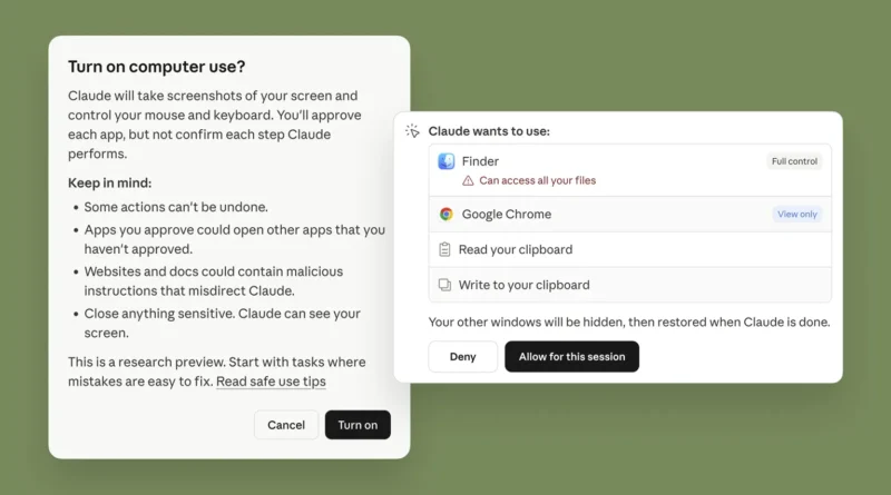 Функцията, наречена „computer use“, дава възможност на Claude да взаимодейства с интерфейса на компютъра по начин, сходен с човешко поведение. Когато липсва директна интеграция с дадена услуга или приложение, асистентът може да използва мишка, клавиатура и браузър, за да навигира, отваря файлове, използва инструменти за разработка и изпълнява конкретни задачи.