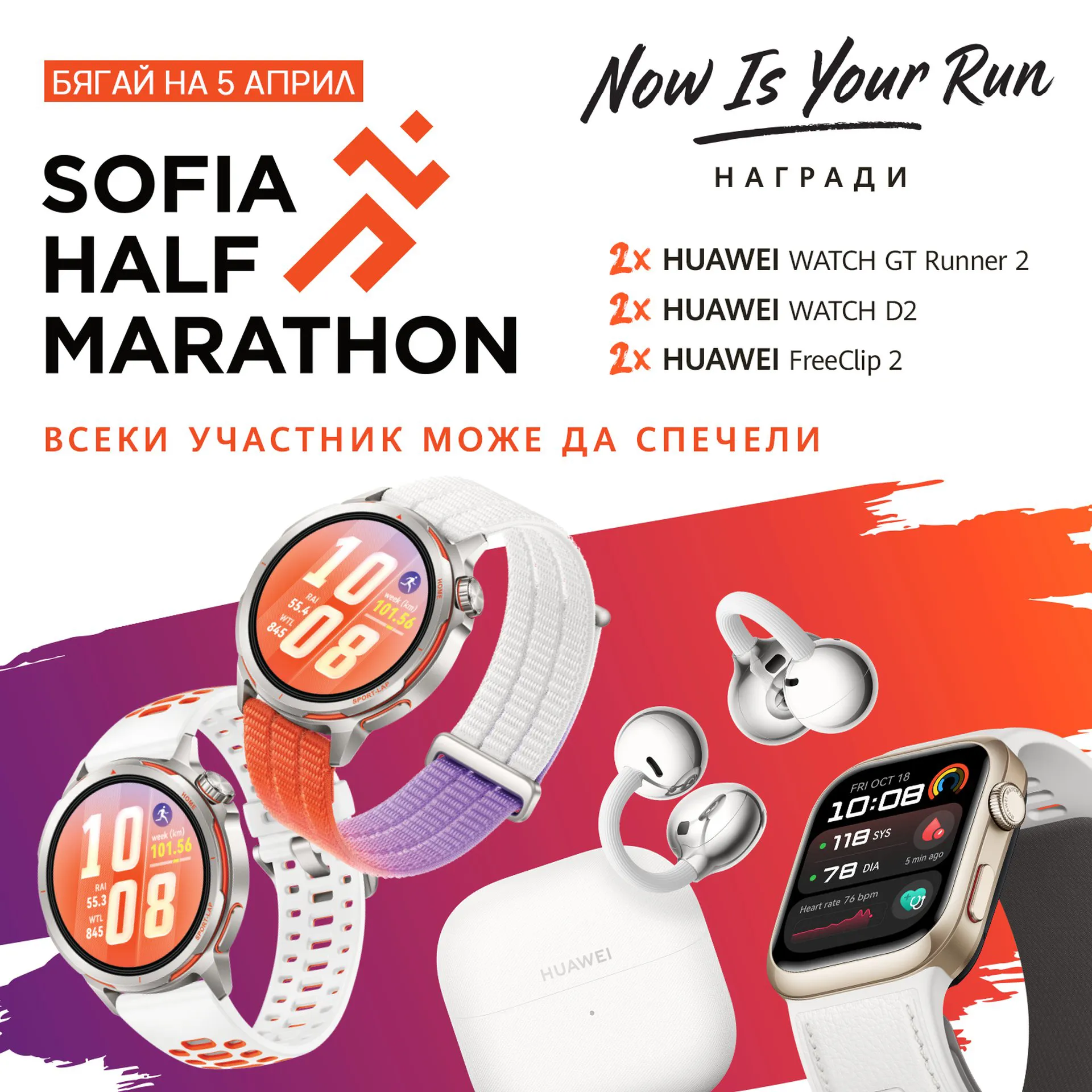 Huawei обяви партньорство със Sofia Half Marathon 2026, който ще се проведе на 5 април в София със старт пред храм-паметника „Св. Александър Невски“. В рамките на събитието компанията ще представи за първи път пред българска аудитория новия смартчасовник Huawei Watch GT Runner 2.