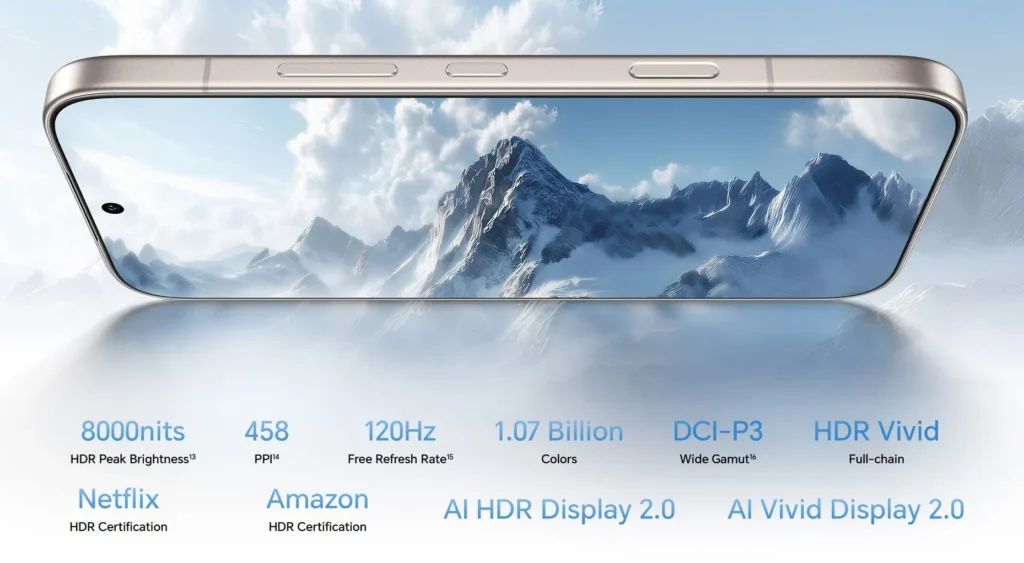 И двата смартфона използват 6.57-инчови AMOLED дисплеи с резолюция 2728 x 1264 пиксела, 120 Hz честота на опресняване, поддръжка на 1.07 милиарда цвята и заявена пикова HDR яркост до 8000 нита. И двата модела разполагат и със защити IP68, IP69 и IP69K, както и със сертификация на SGS за устойчивост при изпускане и натиск.