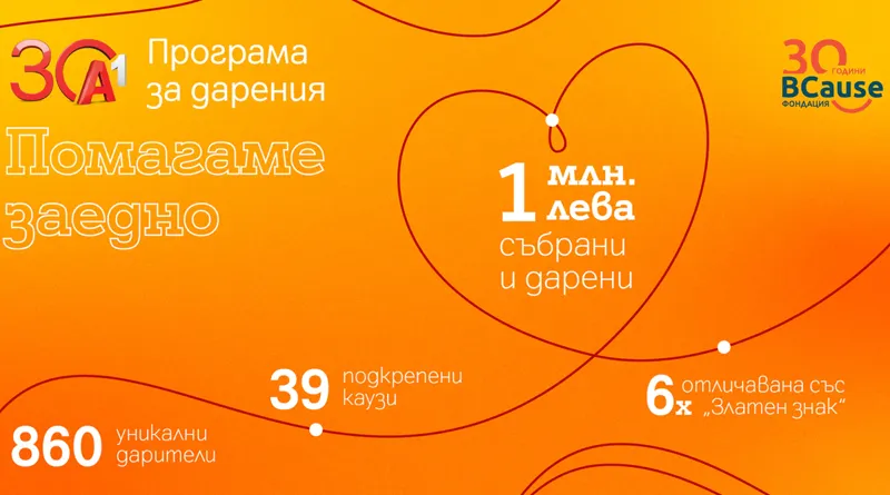 Над 1 млн. лева събрани чрез програмата за дарителство на работното място на А1 за повече от 22 години