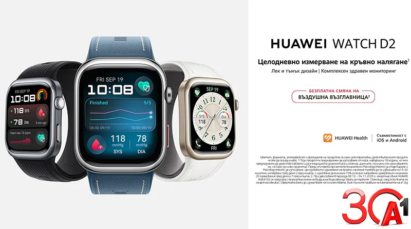 Vivacom стартира продажбите на най-новите устройства от Huawei – смарт часовника Huawei Watch Ultimate 2, Huawei Watch D2 и слушалките Huawei FreeBuds 7i.