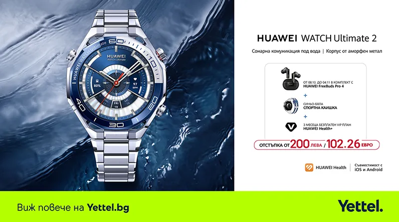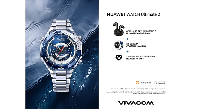 Първият в света смарт часовник за гмуркане до 150 метра дълбочина – Huawei Watch Ultimate 2 – вече е във Vivacom